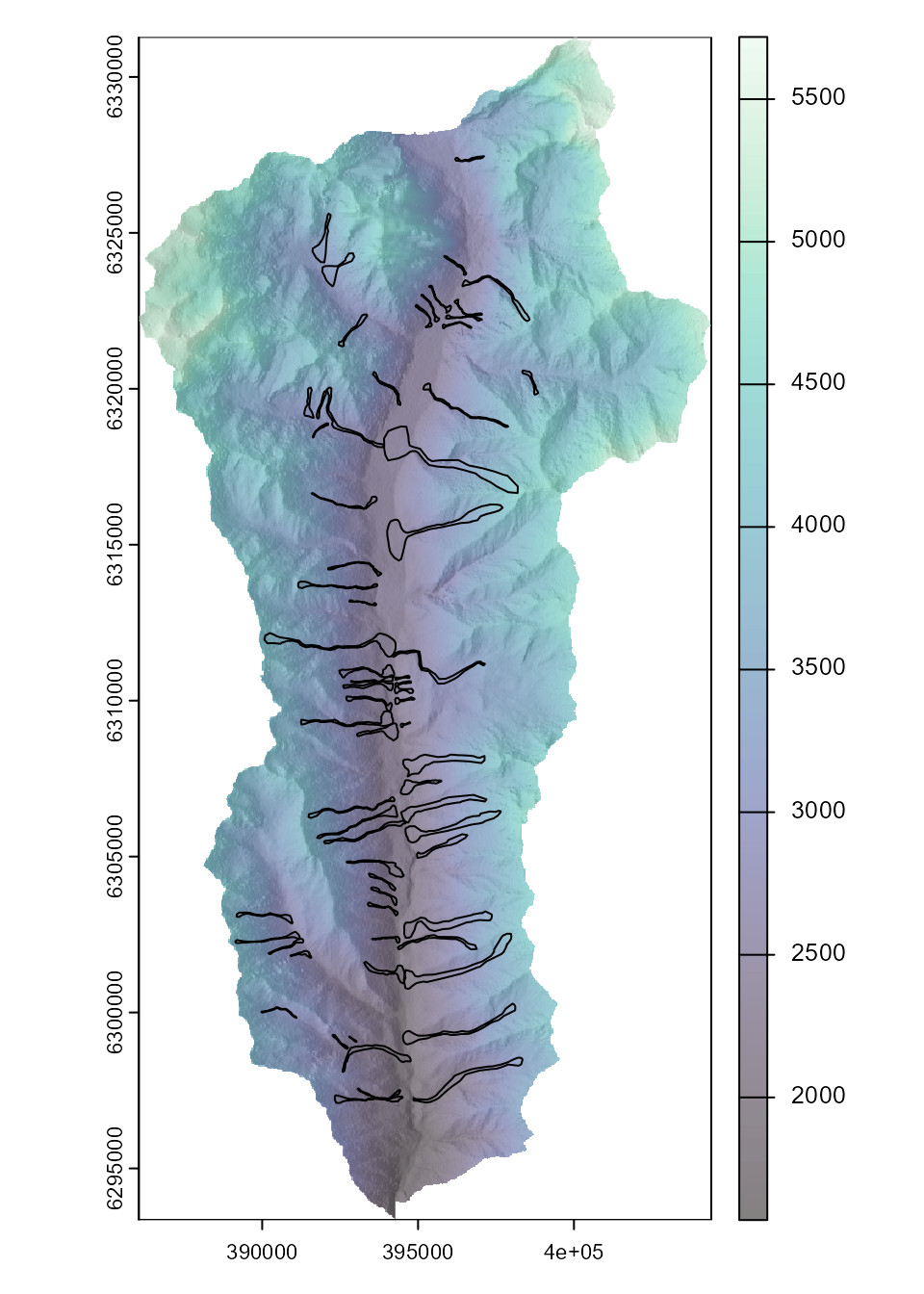 plot(dem, col=viridis::mako(100), alpha = .5, add = TRUE)